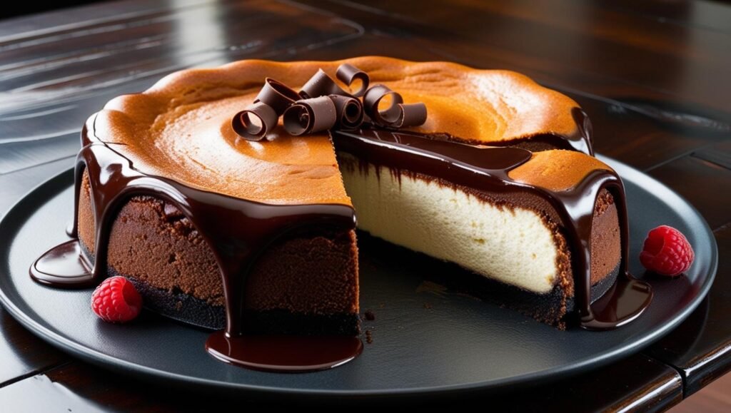 This Chocolate Brownie Basque Cheesecake is a masterpiece of flavor and texture. With its gooey brownie foundation, creamy cheesecake center, and glossy ganache topping, it’s bound to be the star of any dessert table. Whether for a celebration or a cozy night in, this dessert is pure chocolate bliss.