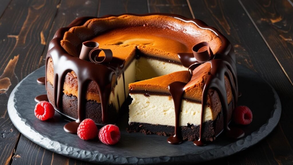 Perfect for special occasions or when you’re simply craving something extraordinary, this dessert offers a unique texture—crispy edges, a gooey brownie layer, and a creamy, cheesecake crown. Each bite delivers a symphony of deep chocolate and creamy tang, making it an unforgettable treat.