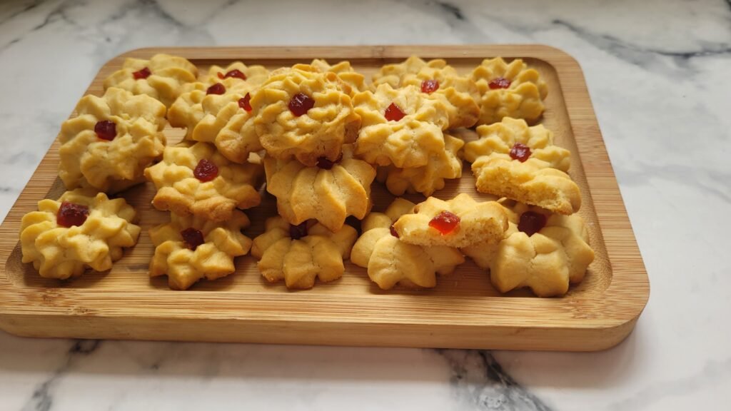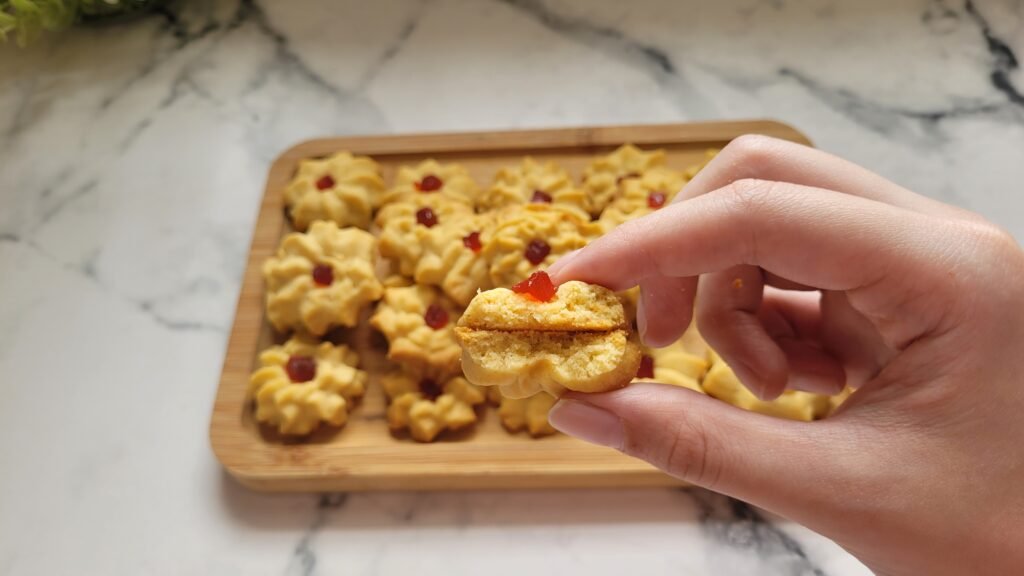 Cherry Butter Cookies are a timeless favorite for Lunar New Year celebrations. Their cheerful appearance, buttery richness, and slight tartness from the cherries make them a delightful treat to share with loved ones. Whether you’re serving them at home or gifting them in decorative boxes, these cookies are sure to bring smiles and good fortune.