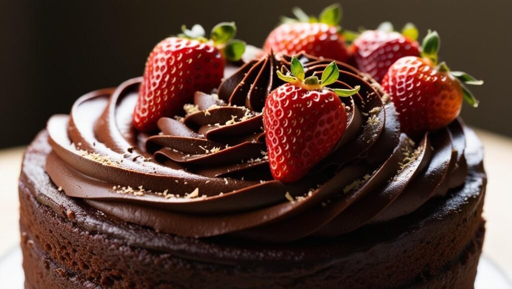 Nothing satisfies a chocolate craving quite like a rich, moist chocolate cake. This cake is the perfect balance of deep chocolate flavor and tender texture, making it the ultimate treat for any occasion. Topped with a creamy chocolate frosting and garnished with fresh strawberries, this cake is as beautiful as it is delicious. Whether you’re baking for a birthday, a gathering, or just to indulge in a slice of chocolatey goodness, this is the best chocolate cake recipe you’ll ever need.