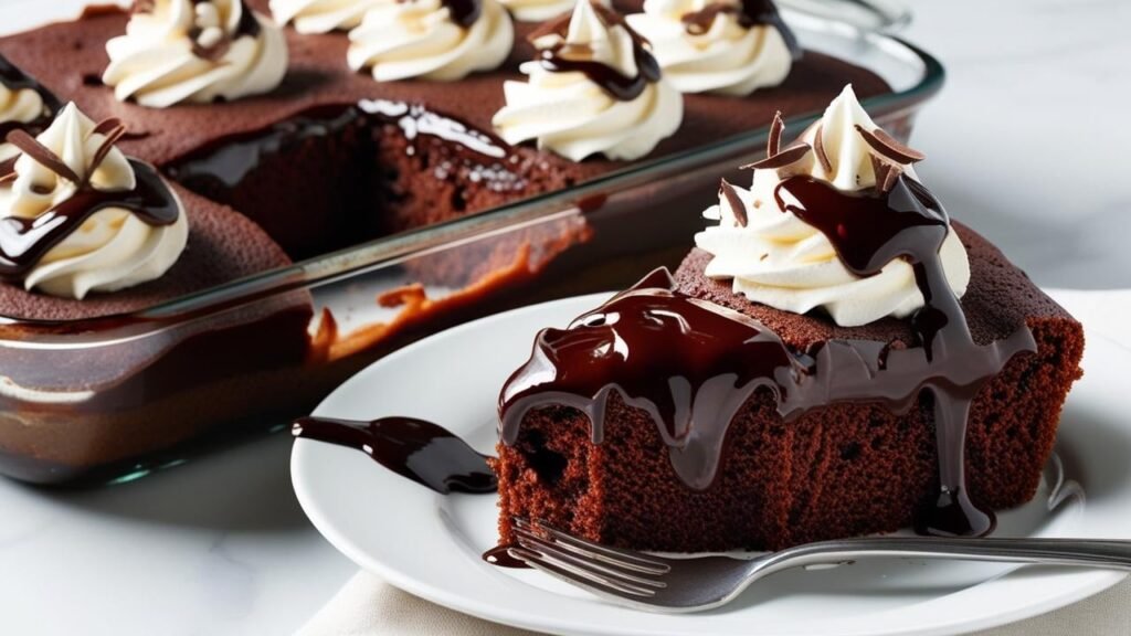 - Add Fudge Sauce: Warm the chocolate fudge sauce slightly and drizzle it over the cake for extra richness.
