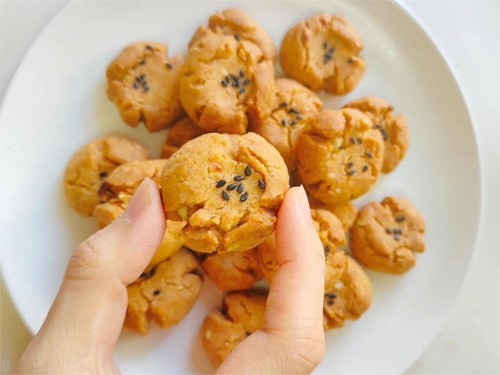 Apply egg wash: Lightly brush the top of each cookie with egg yolk for a golden finish. Sprinkle a few black sesame seeds on top for added flavor and visual appeal.