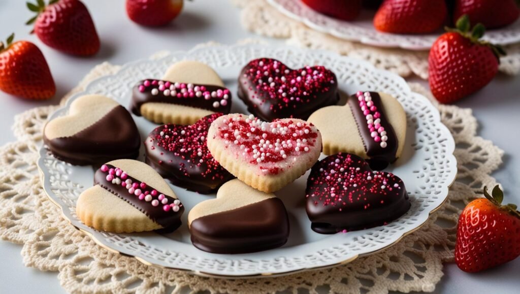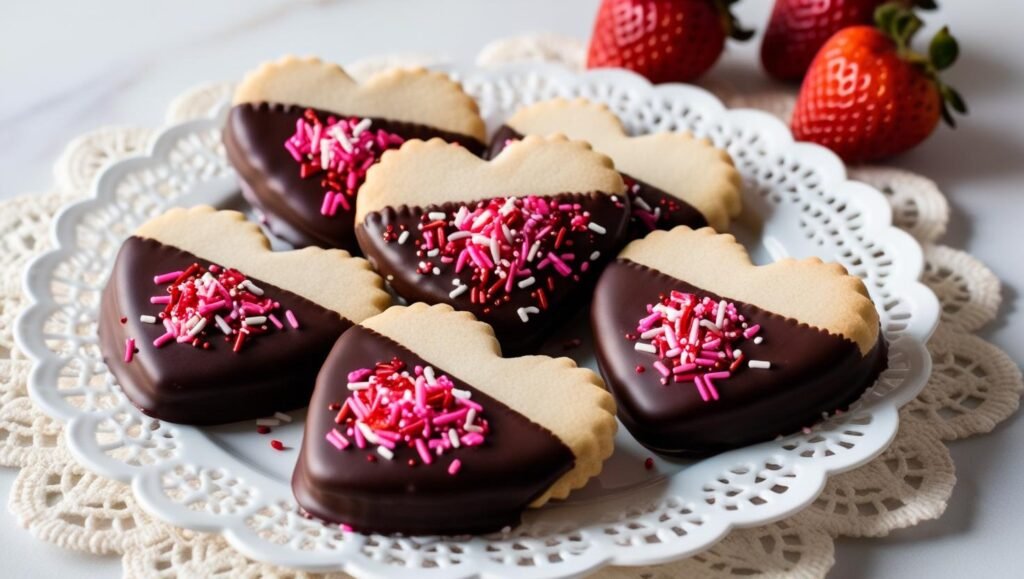 Indulge in the perfect Valentine’s Day treat with these Chocolate Dipped Strawberry Shortbread Cookies! With their buttery, melt-in-your-mouth texture and rich chocolate coating, these cookies are a beautiful and delicious way to show your love. The bright strawberry flavor adds a fruity twist, making them a standout dessert. Topped with colorful sprinkles, they’re as fun to make as they are to eat!