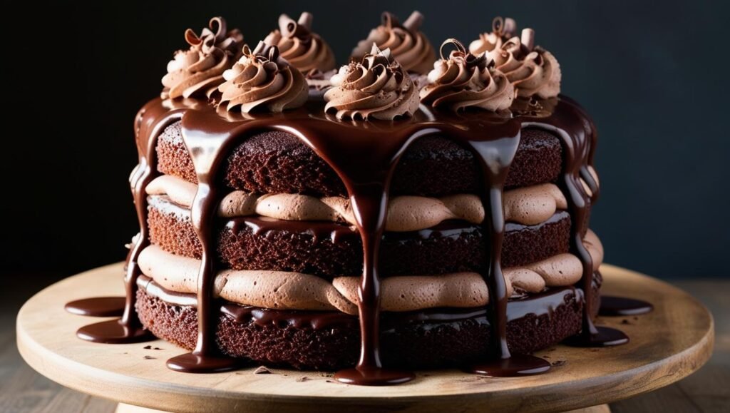 This impossibly decadent triple chocolate cake is the ultimate chocolate lover’s dream—moist, rich layers combined with luscious ganache and fluffy frosting make it a perfect centerpiece for any celebration or indulgent treat. Whether it’s a birthday or just a cozy night in, this cake delivers pure chocolate happiness in every slice.